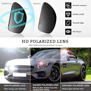 - ✔ENJOY THE SUNSHINE & FEEL THE NATURE - GQUEEN HD UV400 protection lens help block harmful UVA, UVB &UVC rays and protect your eyes against long-term UV damage. Top-rated polarized sunglasses can restore true color and reduce glare without any haze or optical distortion. You can consider wearing accessorizing your look with them when you are on a date, going for an outdoor lunch with friends or office mates, or enjoying your time at an afternoon cocktail party.